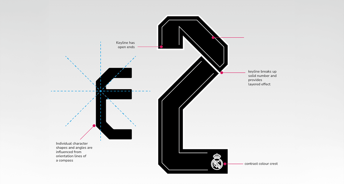 Over the years, our collaboration with Real Madrid has resulted in more than a dozen unique Name & Number designs. Each one is carefully crafted. Each one deeply connected to the club’s culture. Each one designed to dovetail seamlessly into Real Madrid’s identity—past, present, and future. This is the story behind the numbers.