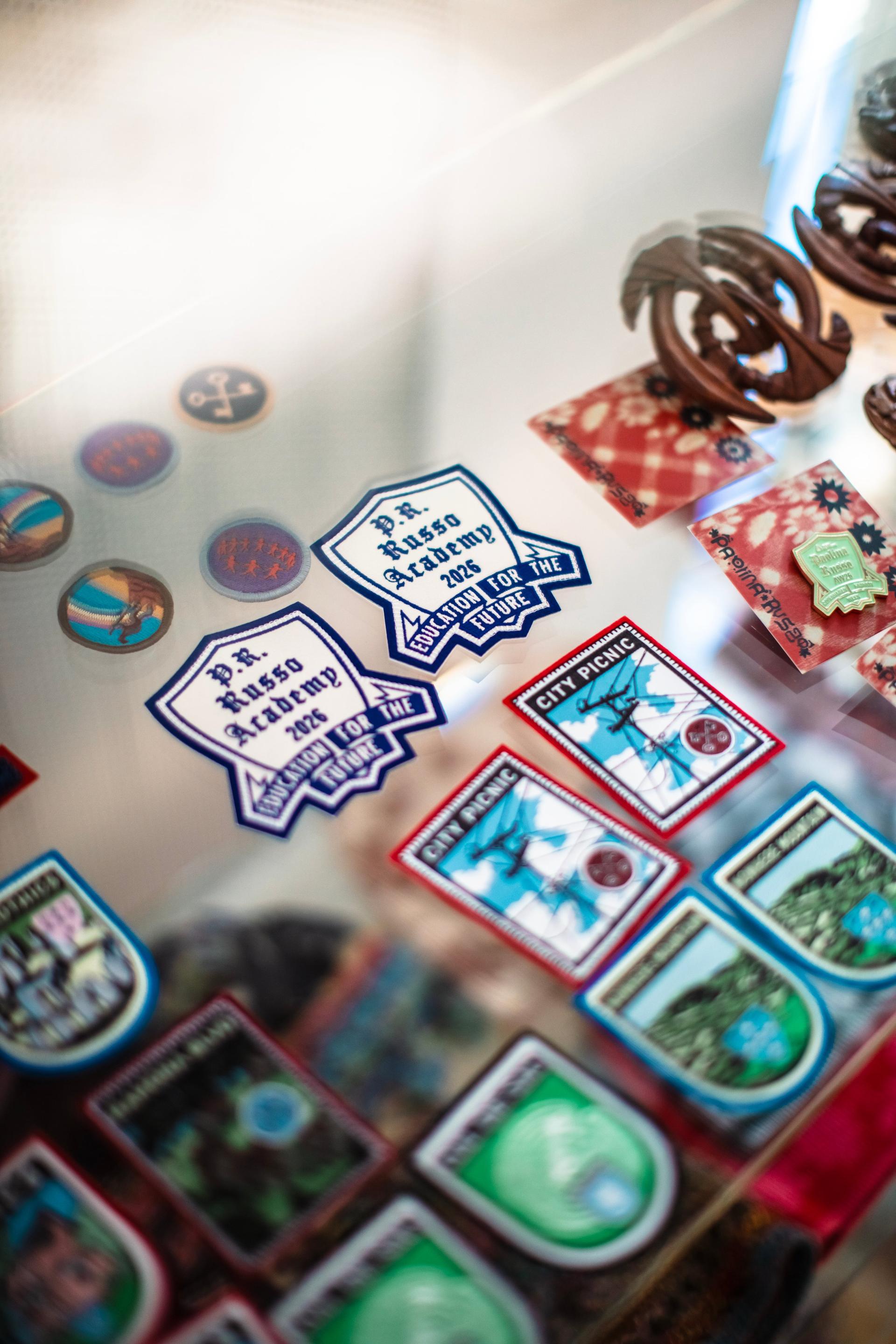 Beyond the apparel, we provided custom enamel pins for all show guests, furthering the collection’s nostalgic school-themed narrative and gifting attendees a curated souvenir. Post show day, Paolina Russo hosted a private customisation workshop for fashion design students, offering them the unique opportunity to create their own custom jersey using Avery Dennison badges.